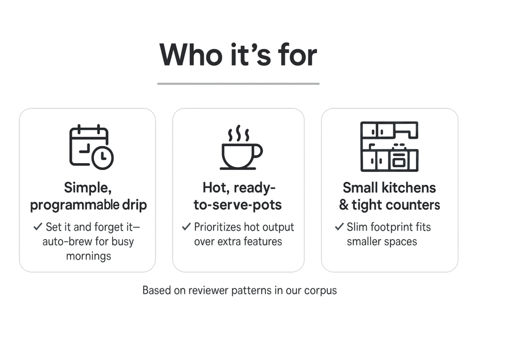- Drinkers who value hot, ready-to-serve pots over bells and whistles