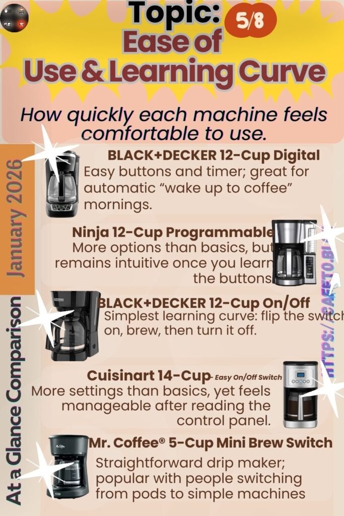 – You want features, but still want drip coffee (not pods). - 🔘🙅♂️⏱️ BLACK+DECKER 12-Cup Coffee Maker with Easy On/Off Switch — choose it if: