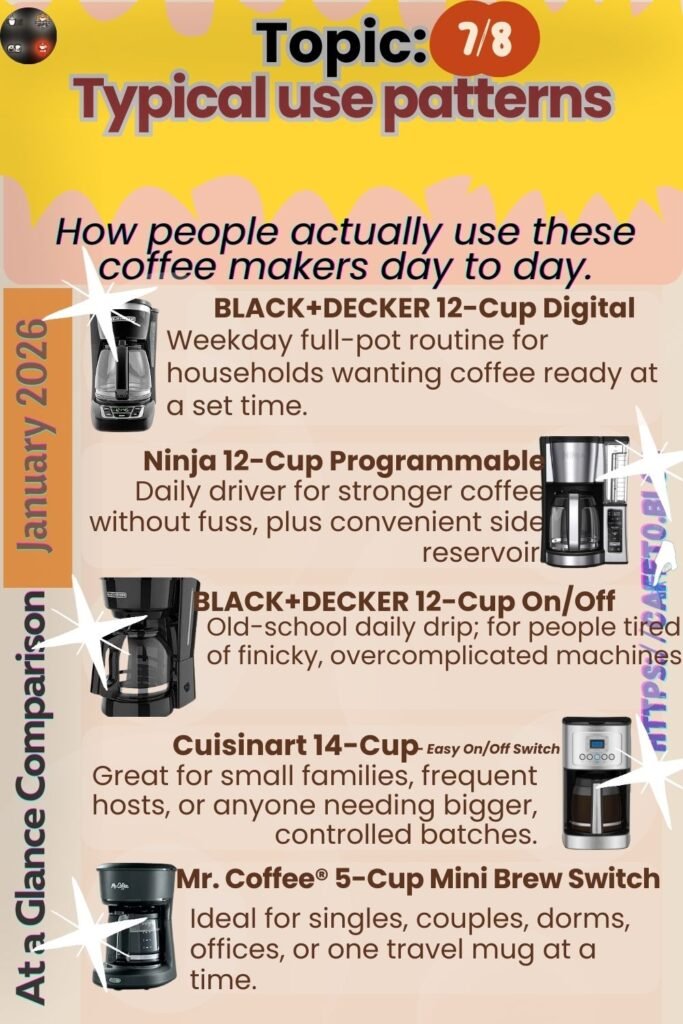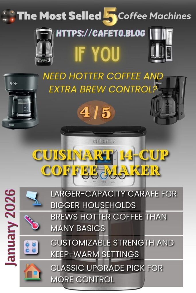 – You’re okay managing shut-off yourself if needed. - 👨👩👧👦🎛️🌡️ Cuisinart 14-Cup Coffee Maker — choose it if: