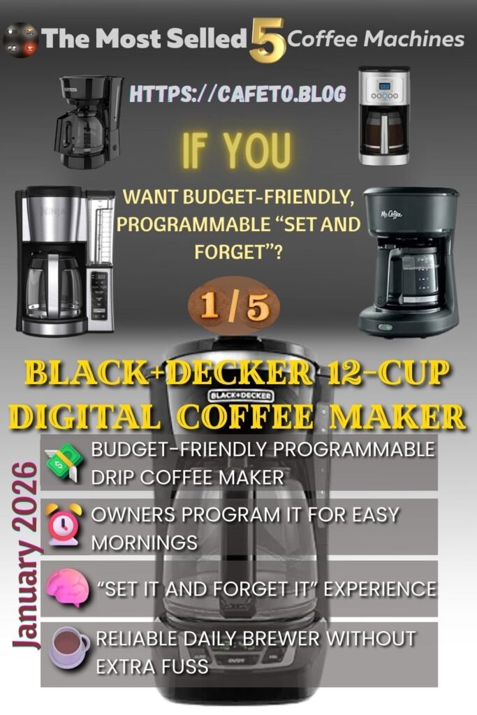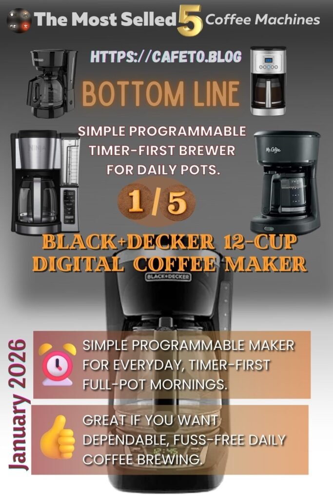 BLACK+DECKER 12-Cup Digital Coffee Maker is the best “simple programmable” option for everyday full-pot mornings. ⏰☕