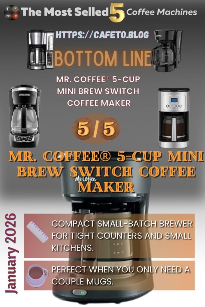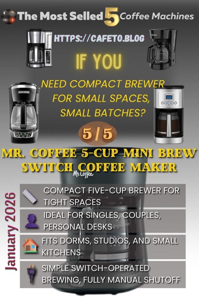 – You want hotter coffee and don’t mind a little “learn the routine” setup. - 👤👥📏 Mr. Coffee® 5-Cup Mini Brew Switch Coffee Maker — choose it if: