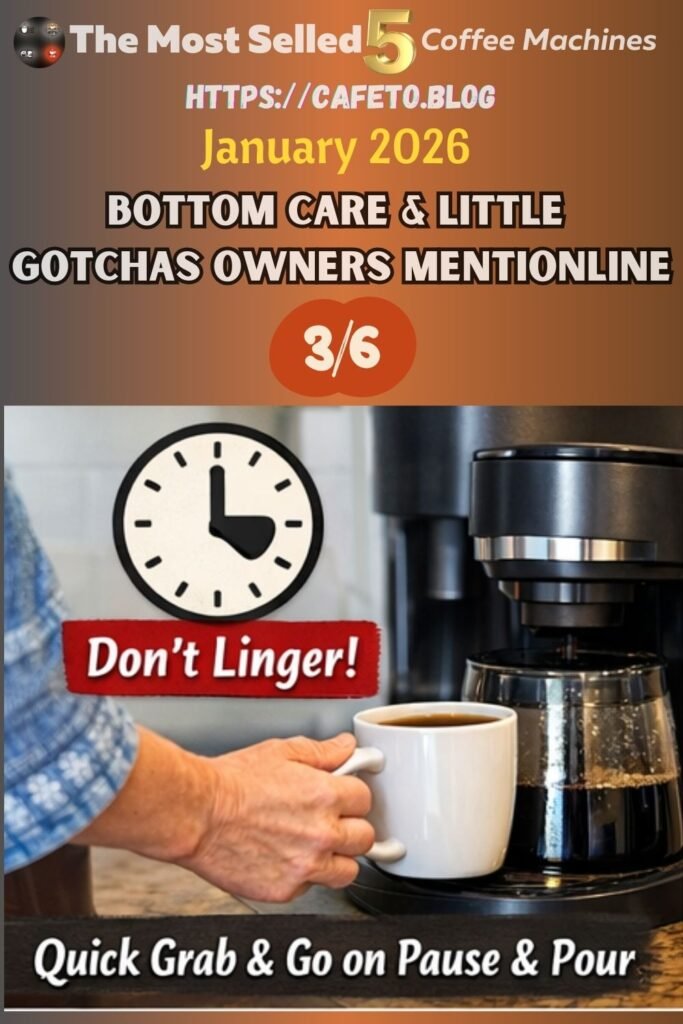 Two things owners bring up often: first, “5-cup” is small in real life (people describe it more like a couple large mugs). Second, the pause feature is handy, but you can’t leave the carafe out too long mid-brew without risking drips or backup.